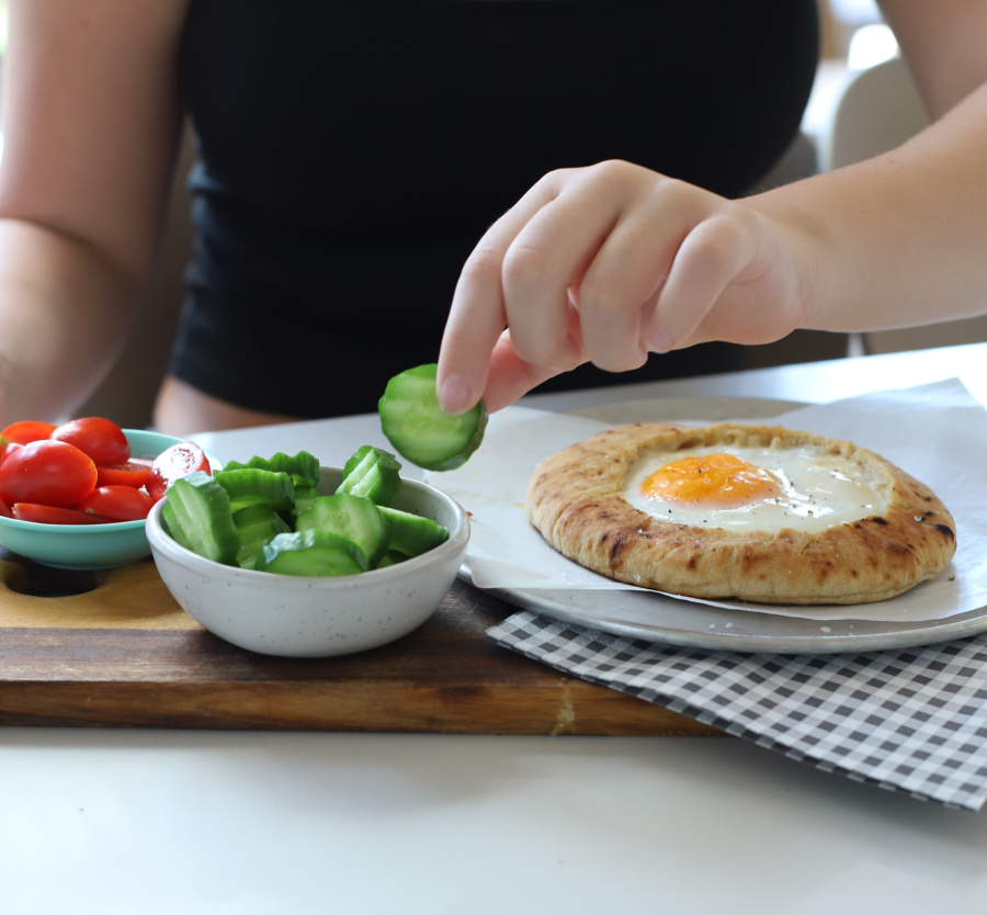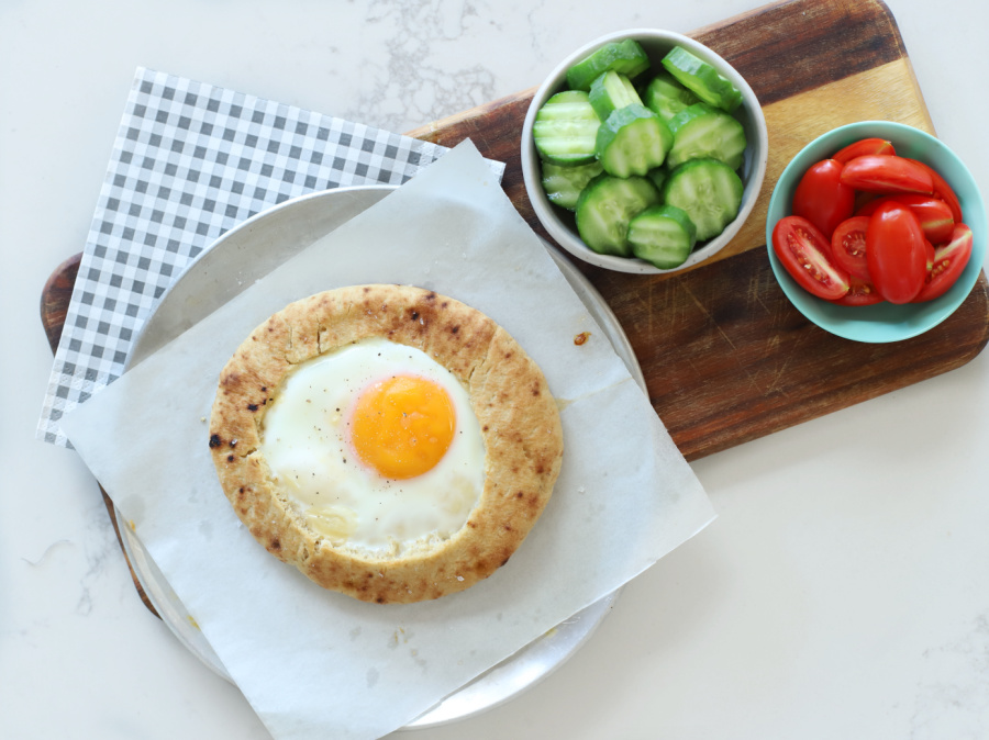 כמה דגשים טכניים – את חיתוך העיגול החוצה צריך לעשות בעדינות באופן שהסכין לא תעבור גם לחלק התחתון של הפיתה, ואז גם לפרק אותו החוצה בעדינות כדי שהפיתה לא תקרע | אל תוותרו על להרים את השוליים העליונים ולתת לביצה להיכנס – זה חלק חשוב! אחרת הלבן של הביצה נשפך החוצה וזה מבאס וגם מלכלך…
