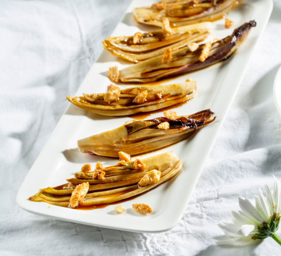 סירות אנדיב צלויות – עם שקדים מסוכרים וזיגוג מתקתק