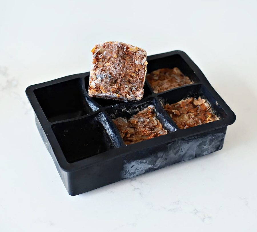 אני מעבירה לתבנית סיליקון של קוביות גדולות (לינק בהמשך), דוחסת טוב טוב פנימה לכל שקע